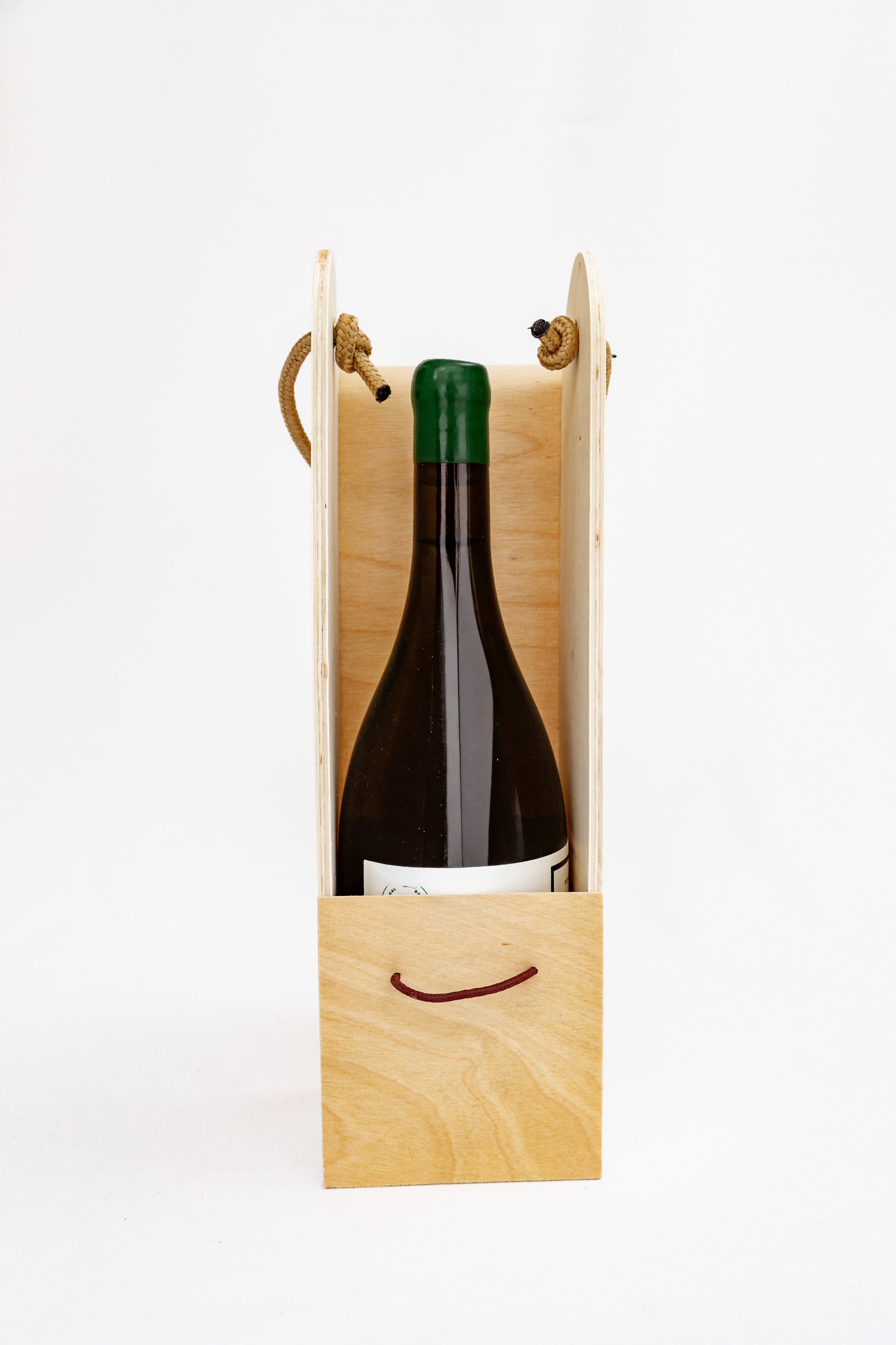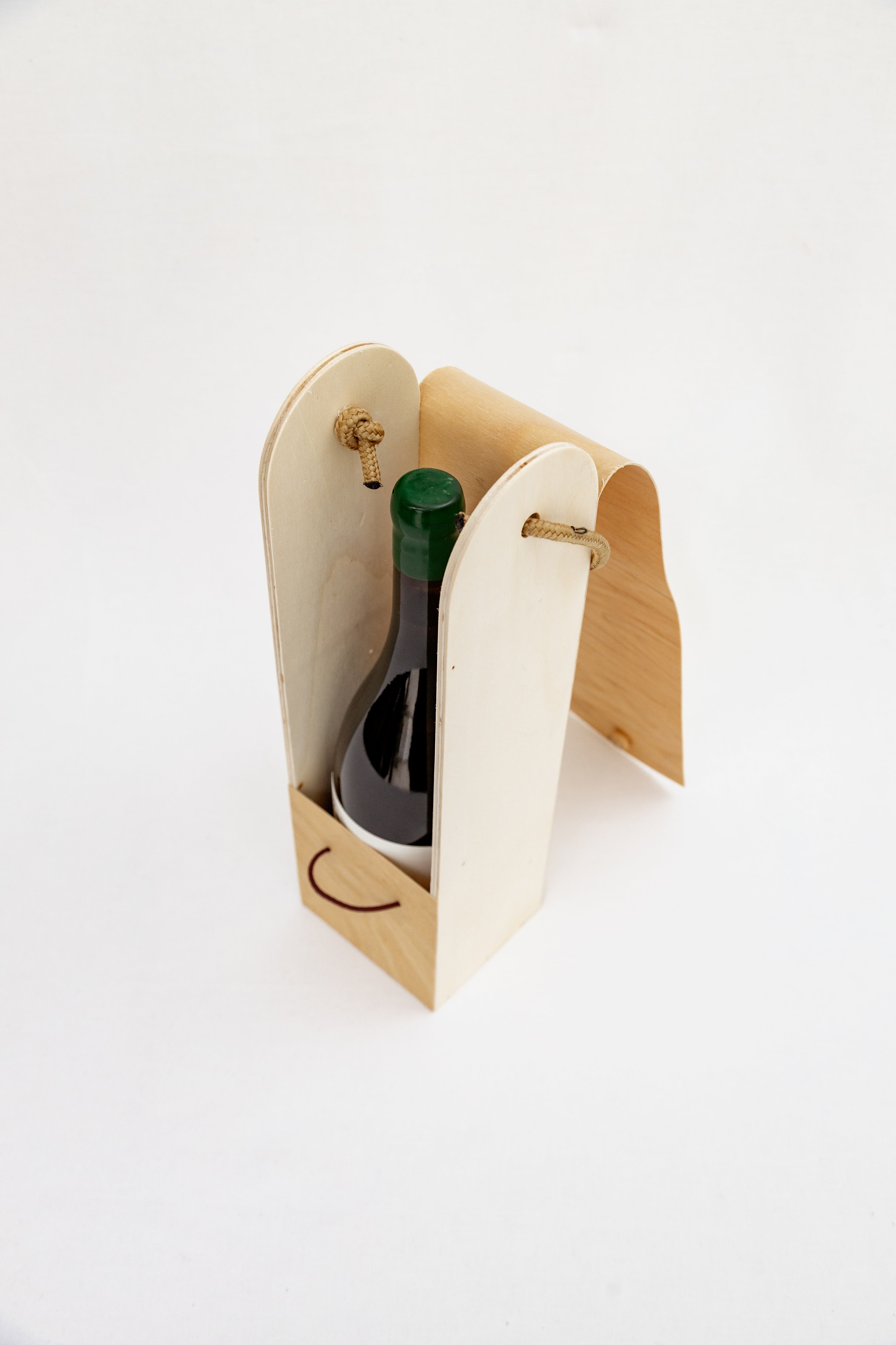 Com seu formato curvo em folha de madeira (Wood Veneer) e com design delicado, protege a garrafa, valoriza a apresentação e ainda pode ser reutilizada para transporte ou decoração.